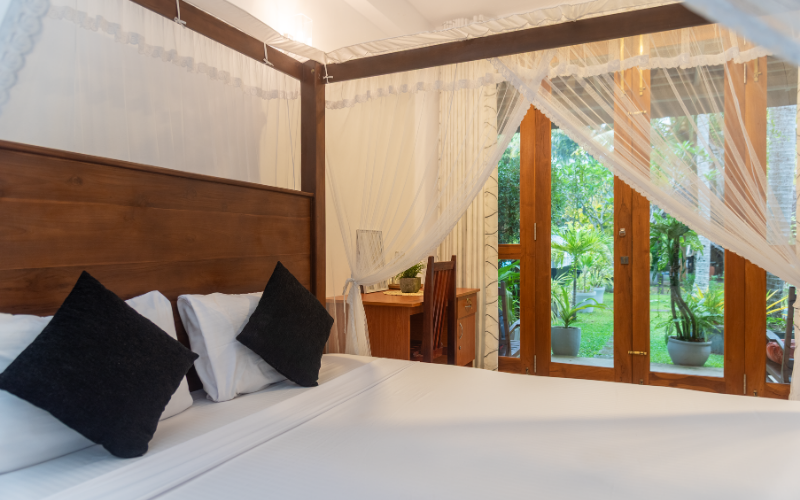 Designed for comfort and focus — each comes with a large double bed, work desk, private bathroom, cupboard, and air-conditioning. Perfect for couples, solo travelers, or digital nomads.
